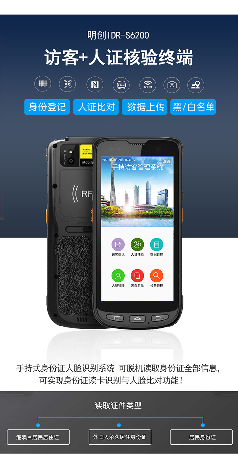 【可用于考試、工地、煤礦等行業】明創IDR-S6200人證比對 人證識別 人證核驗一體機 手持平板式 人臉與身份證比對 人證合一識別系統 實名制 人臉與身份證比對